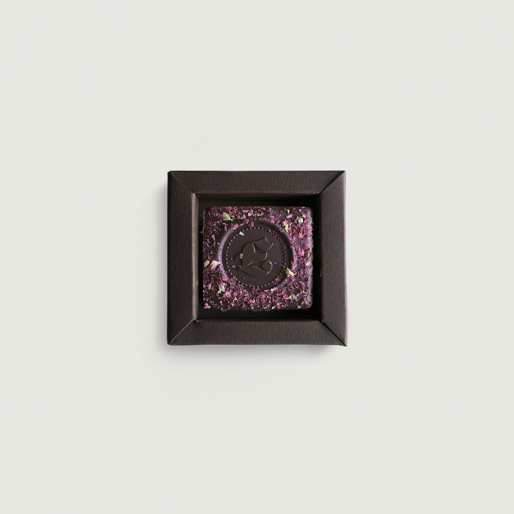 Indulge in the sophisticated flavour of our pistachio and rose praline bonbon. A perfect combination of dark chocolate and creamy pistachio filling, with a subtle touch of rose petals, resulting in a smooth texture and an irresistible taste. Ideal for gifting or enjoying during your most special moments.